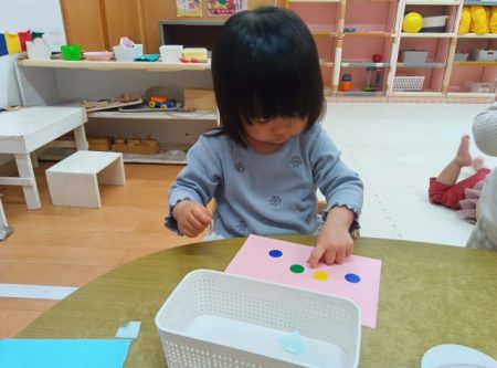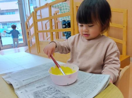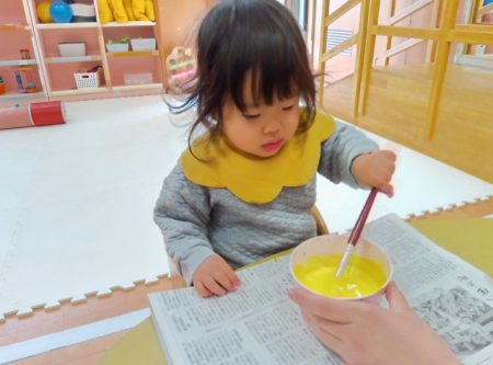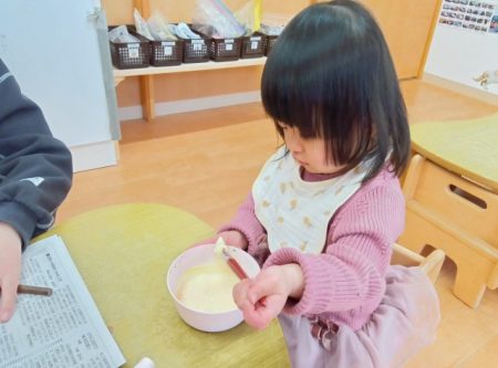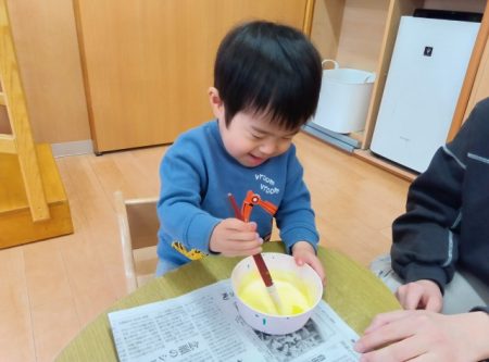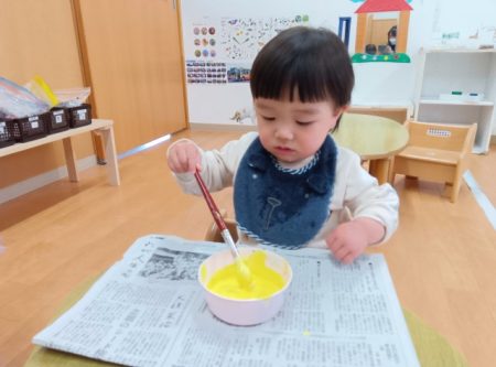 保育士が見本を見せると、上手に混ぜることができていた子どもたちでしたよ!