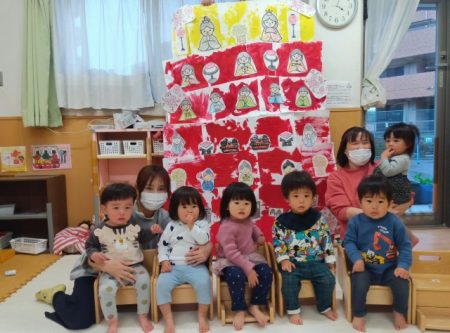 今年度は子どもたちに協力をしてもらい、保育園全体で製作をしながら雛人形を作りました。