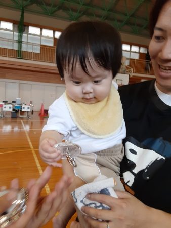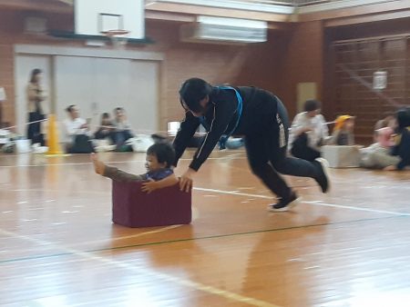 子どもが押し箱に乗っている、しかしスピードはないと負けてしまうという塩梅の難しい競技でしたが、怪我無くゴールすることが出来ました。