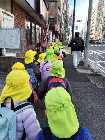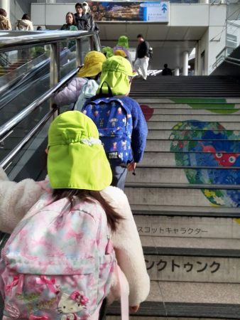 朝の会後にみんなで支度をして出発。