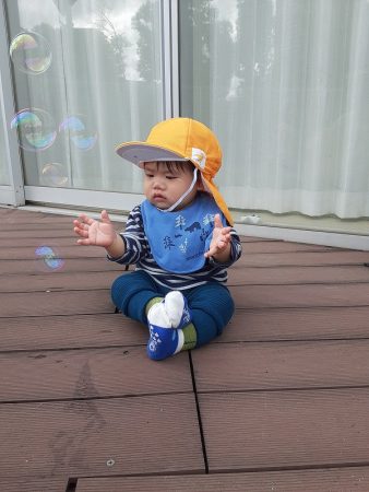 大好きなシャボン玉を用意すると、シャボン玉を目で追う姿が。